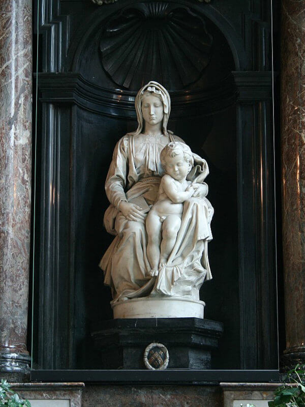 - La Vierge à l’Enfant ou « Madone de Bruges », sculpture en marbre de 125cm réalisé par Michel-Ange entre 1501 et 1504 ;